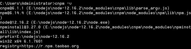 npm install -g cnpm --registry=https://registry.npm.taobao.org安装完成,我们测试是否安装成功
